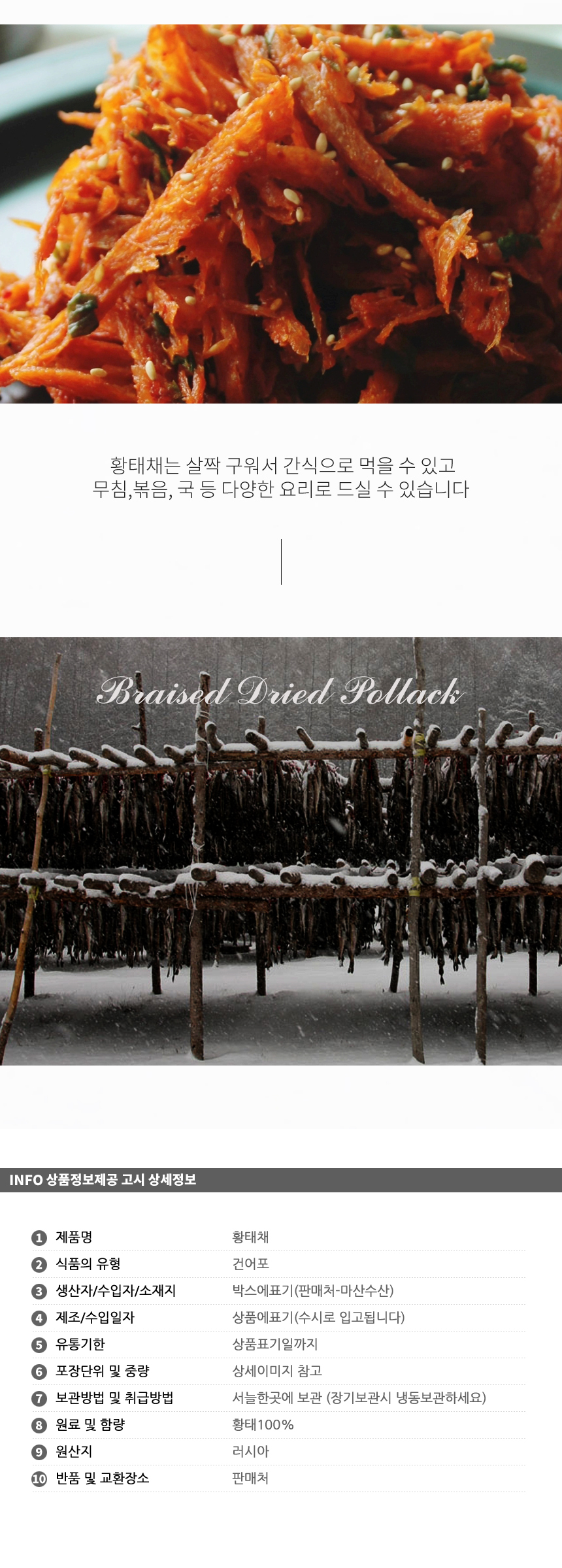 자연건조 황태채100g 찢은황태채 품질좋은 최상급 맛있는 볶음 구이 황태 자연황태