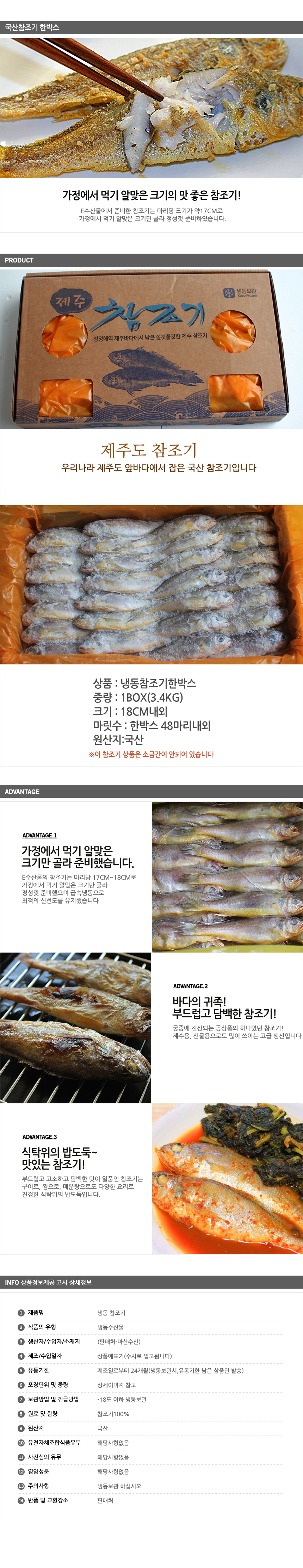 e수산물 국산참조기 3.4kg 48마리 제주도참조기 한박스 참조기 조기구이 매운탕 냉동조기