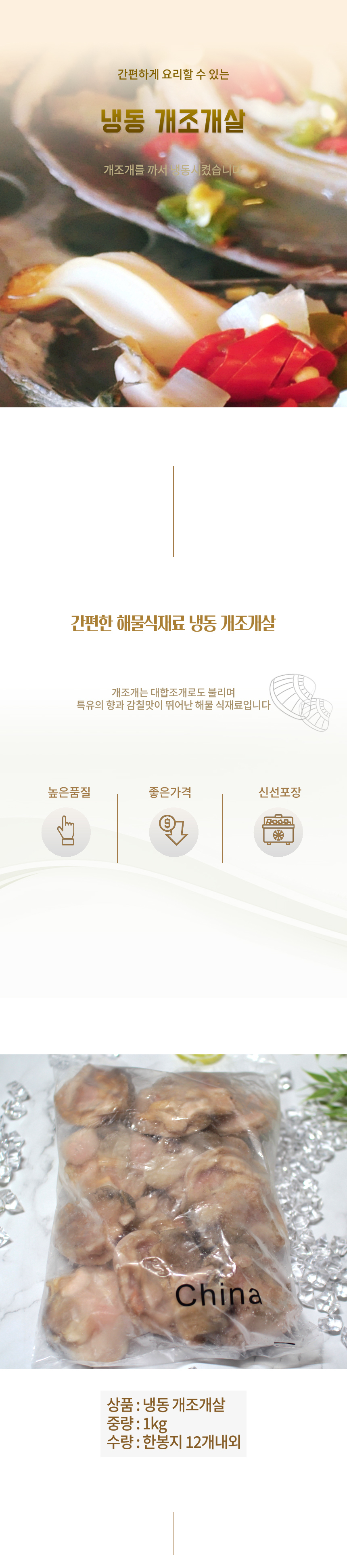 냉동 깐 개조개살 1kg 대합살 대합조개 조갯살 탕국 볶음 구이 해물육수