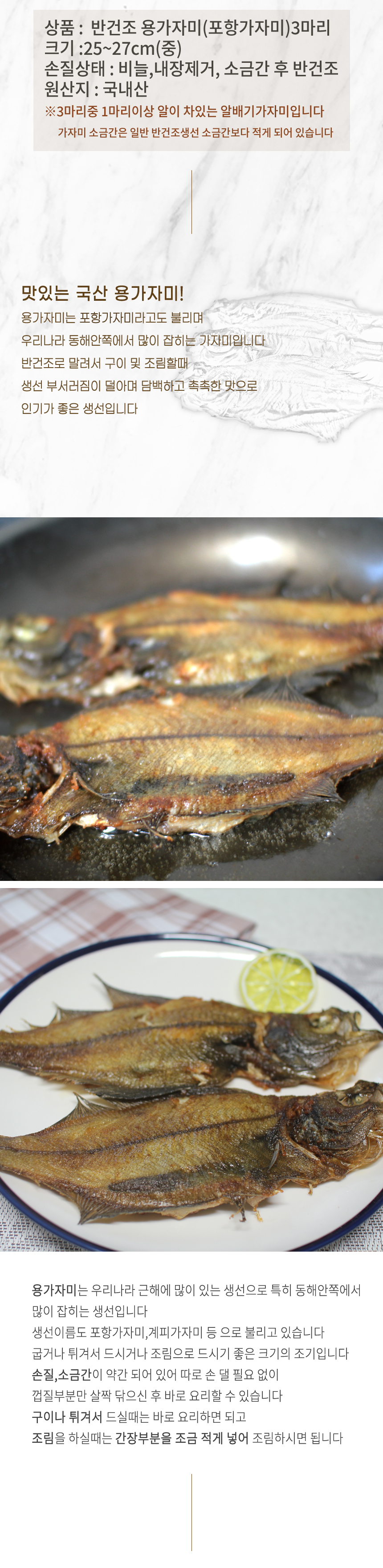 e수산물 국산 반건조가자미 3마리 조림용 구이용 국산 용가자미 포항가자미 말린 가자미 반건조생선 알가자미