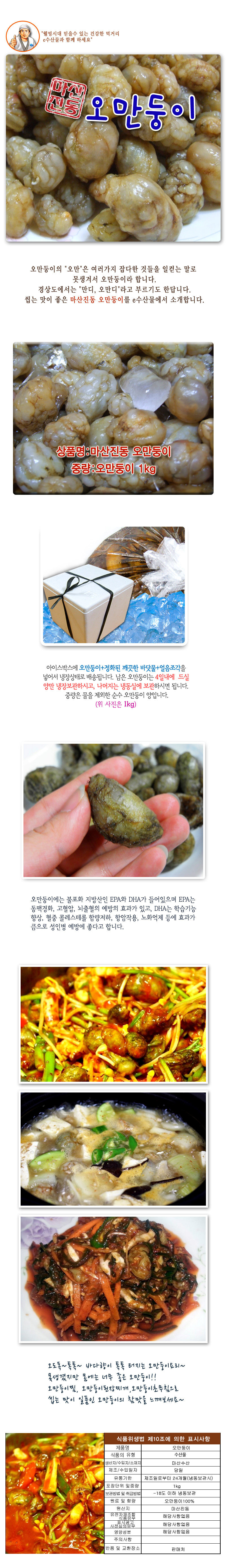 마산 진동 냉동 오만둥이 1kg 해물찜 찌개용 해산물 오만디 미더덕사촌 오만둥이