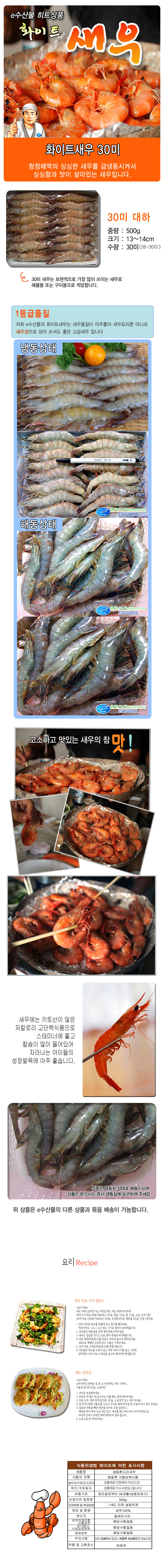 이미지 확대보기새우30마리 냉동새우 튀김 감바스 새우장 해물요리용